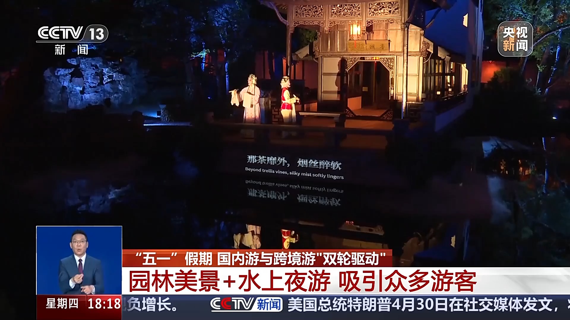 “五一”期間,作為旅游熱門城市的蘇州也迎來了大客流。在最具江南韻味的蘇州老城區(qū),在全息投影等技術(shù)支持下,蘇州園林夜游、河畔人家水上游等項(xiàng)目受到游客歡迎。