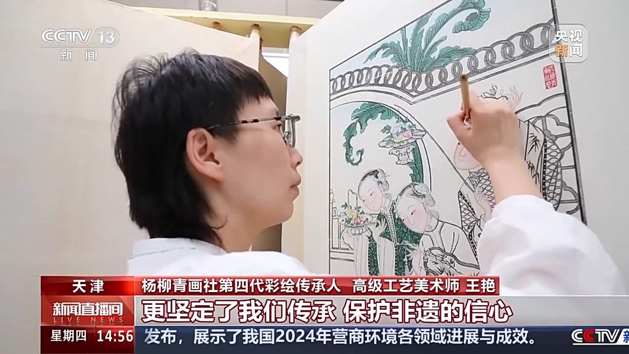 楊柳青畫社第四代彩繪傳承人、高級工藝美術(shù)師 王艷:人們的喜愛,讓我收獲了更多的文化認(rèn)同感,更堅(jiān)定了我們傳承、保護(hù)非遺的信心,希望我們可以創(chuàng)作出更多具有這個(gè)時(shí)代屬性的新年畫。