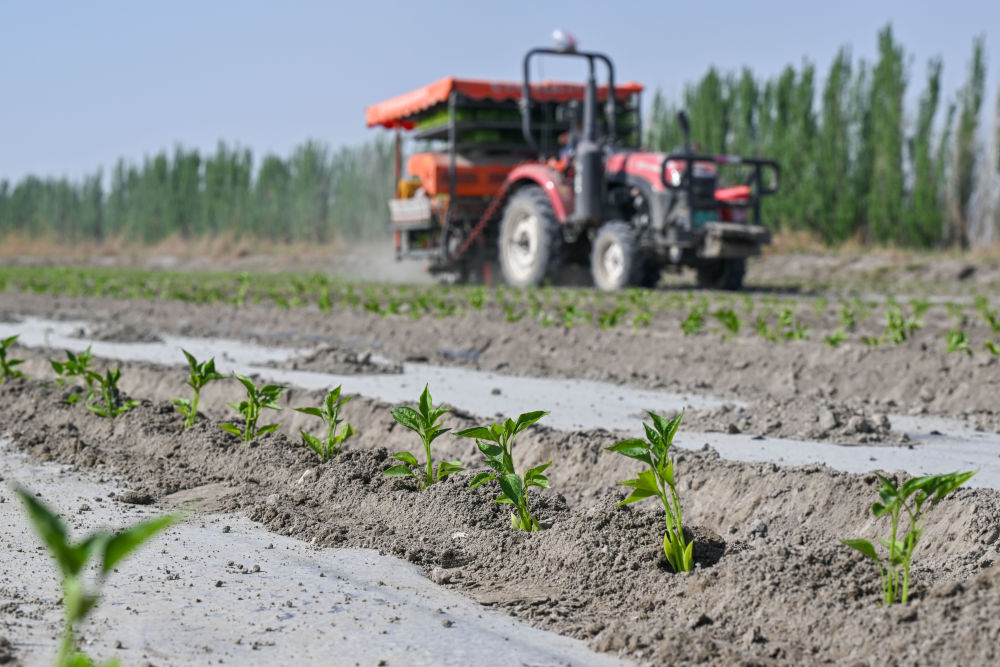 一場春雨不期而至,打濕地皮也“染”綠樹梢,天山南麓遲來的春意更加肆意蔓延。踏上田壟,透過綠茵般的麥田遠遠望去,一臺臺辣椒自動移栽機正筆直地駛過田野,播下兩行嫩綠的辣椒苗后,蕩起一縷微塵。