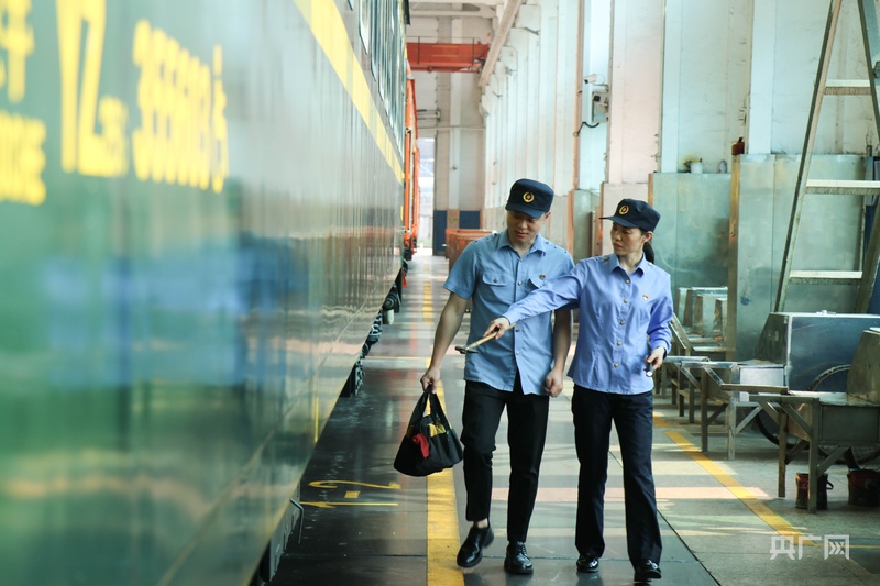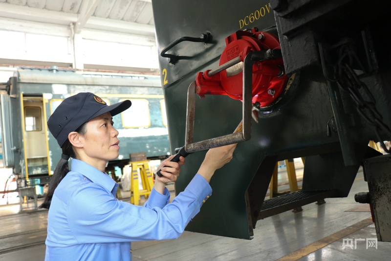 吳園梅和徒弟正在檢修車輛(央廣網(wǎng)記者 劉培俊 攝)