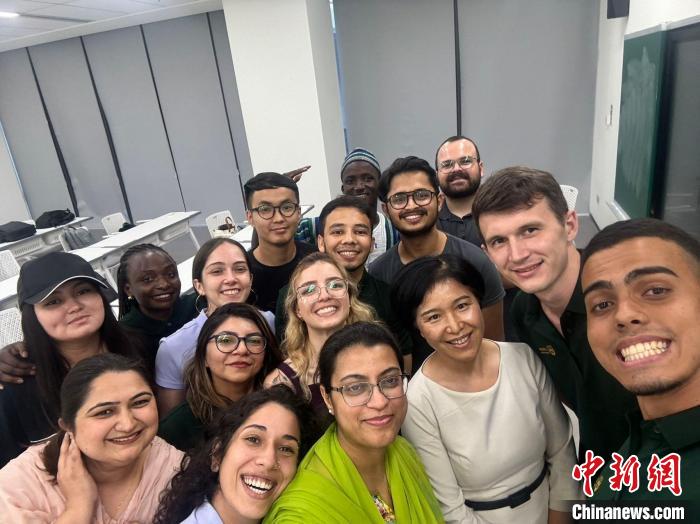 2024年11月15日,尼古拉(右二)在中國(guó)農(nóng)業(yè)大學(xué)三亞研究院就讀時(shí),與老師和同學(xué)的合影。(受訪者 供圖)