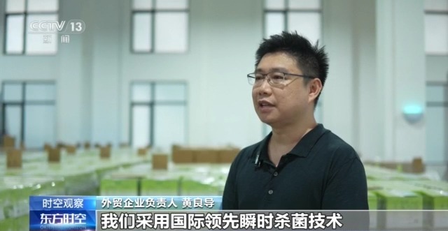 外貿(mào)企業(yè)負責人 黃良導:我們采用國際領先瞬時殺菌技術,產(chǎn)品營養(yǎng)保留率超95%。截止到今年4月,產(chǎn)品已覆蓋全國31個省市,進入大型商超以及多家連鎖便利店渠道,合作終端網(wǎng)點30萬家,同比增長22.5%。