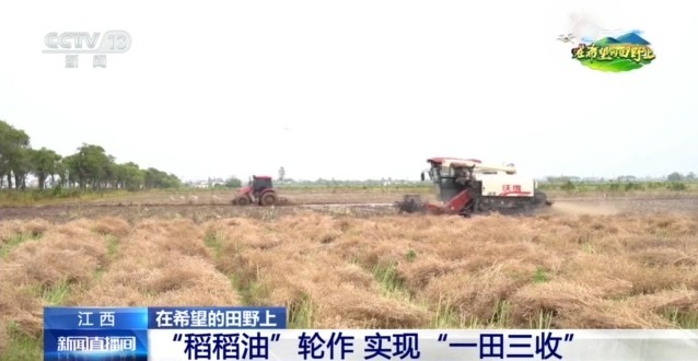 在江西撫州崇仁縣孫坊鎮(zhèn)的一個合作社,近200畝冬油菜正在收割。今年合作社按照江西省推廣的“稻稻油”輪作模式,利用冬閑田種植油菜新種,不僅讓農(nóng)田實現(xiàn)“一田三收”,同時配套良種、良法、良機,油菜畝均產(chǎn)量也從往年的每畝150斤提高到今年的200斤左右。