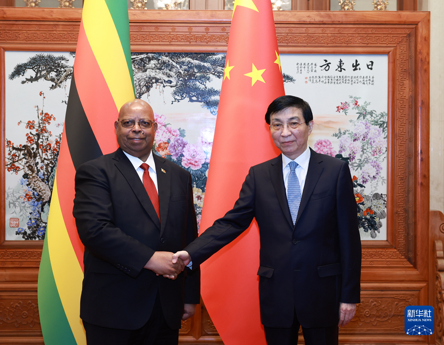 5月14日,中共中央政治局常委、全國政協(xié)主席王滬寧在北京會見津巴布韋眾議長穆登達(dá)。新華社記者 王曄 攝