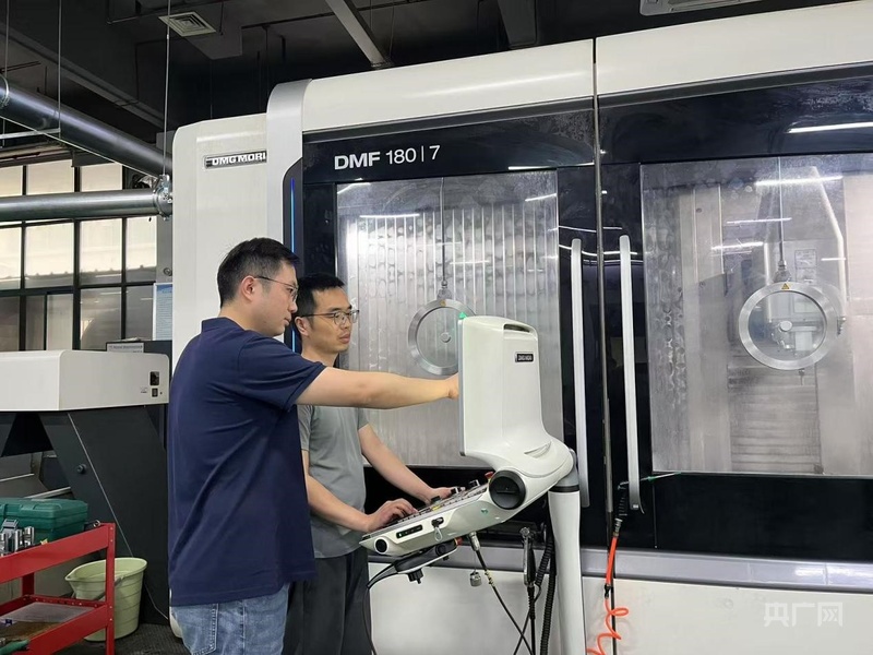 楊浩駿與團隊成員研究航空裝配制孔技術(shù)(央廣網(wǎng)記者 欒永勝 攝)