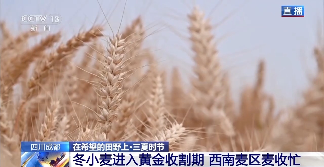 我國(guó)是全球最大的小麥生產(chǎn)國(guó),每年的5月中旬至6月是冬小麥的黃金收割期,率先開(kāi)鐮收割的是西南麥區(qū),然后是長(zhǎng)江中下游麥區(qū)、黃淮海麥區(qū)、西北麥區(qū)。西南麥區(qū)冬小麥面積1500萬(wàn)畝左右、占我國(guó)冬小麥面積的4.5%??偱_(tái)央視記者蔣樹(shù)林在西南麥區(qū)的四川天府糧倉(cāng)麥?zhǔn)宅F(xiàn)場(chǎng),來(lái)連線他看看現(xiàn)場(chǎng)的情況↓
