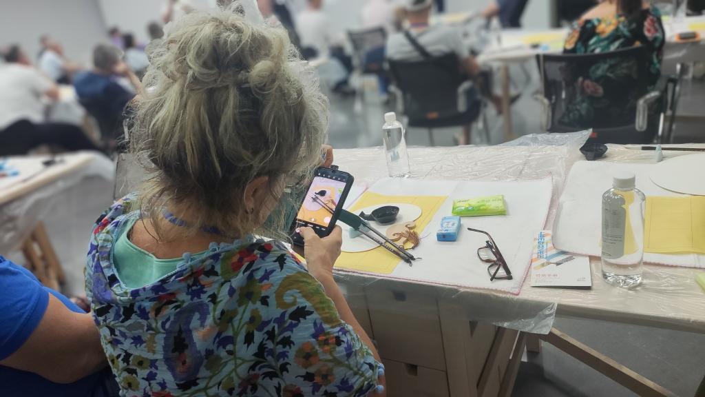在上海市群眾藝術(shù)館,近60名波蘭團(tuán)隊(duì)游客跟隨書法指導(dǎo)老師了解中國“文房四寶”的制作方法,學(xué)習(xí)用毛筆書寫漢字,還參觀了最新攝影展及非遺市集,了解上海各級(jí)文化館服務(wù)內(nèi)容、工作職責(zé)。