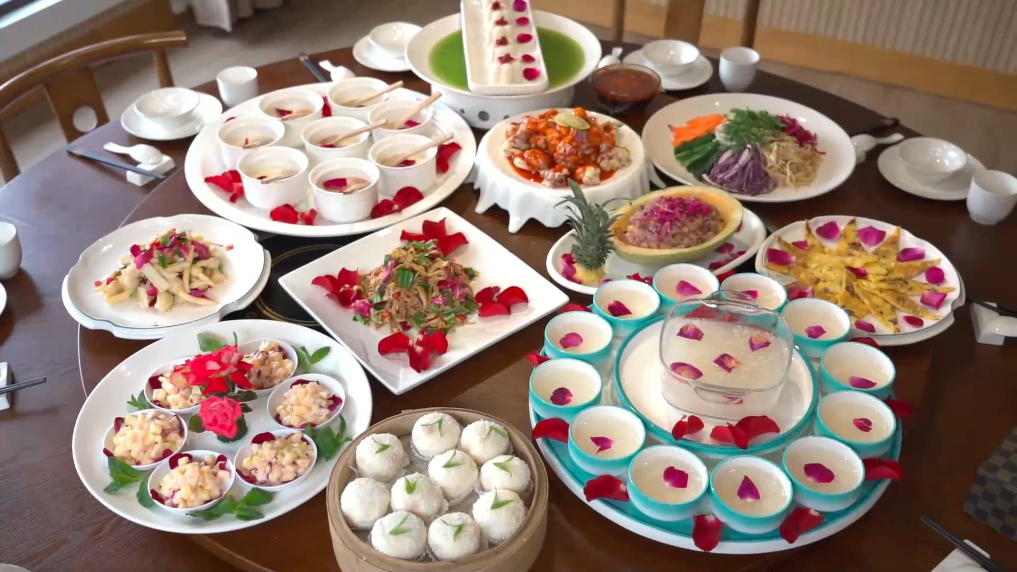 “今天很榮幸能吃到一桌都是用玫瑰花制作的菜肴,特別浪漫?!庇慰完愂缛A說,“每一道菜都非常精致,真的是一種‘舌尖上的享受’。”