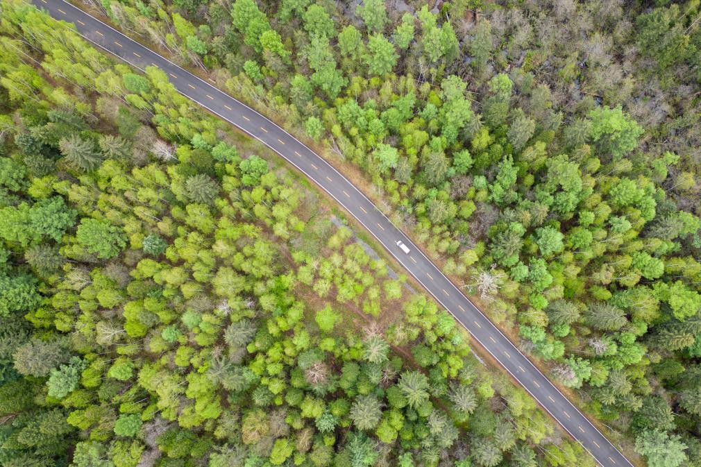 2024年7月11日,游客乘坐電瓶車在伊春市上甘嶺溪水國家森林公園內(nèi)穿行(無人機(jī)照片)。新華社記者 張濤 攝