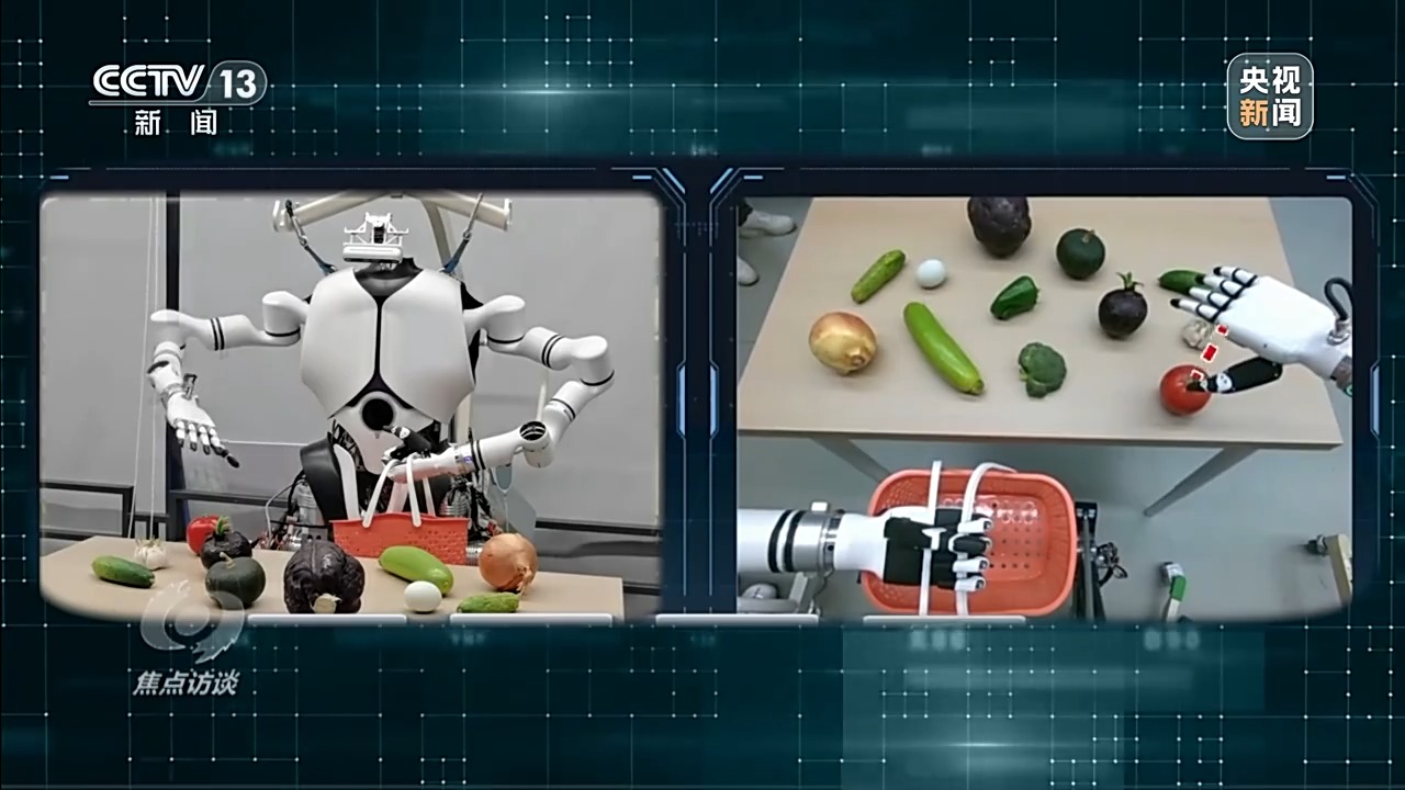 在中國科學(xué)院自動化研究所多模態(tài)人工智能系統(tǒng)全國重點實驗室,科研人員正在對人形機器人Q5進行語言指令和視覺跟隨訓(xùn)練。