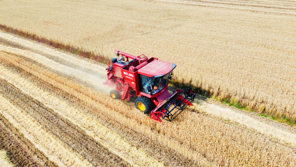 全國“三夏”大規(guī)模小麥機(jī)收全面展開。記者在河南、山東、浙江、江蘇等地看到,收割機(jī)開足馬力馳騁在麥田中,一排排小麥被整齊地切割、脫?!瓘V袤農(nóng)田一片繁忙景象。