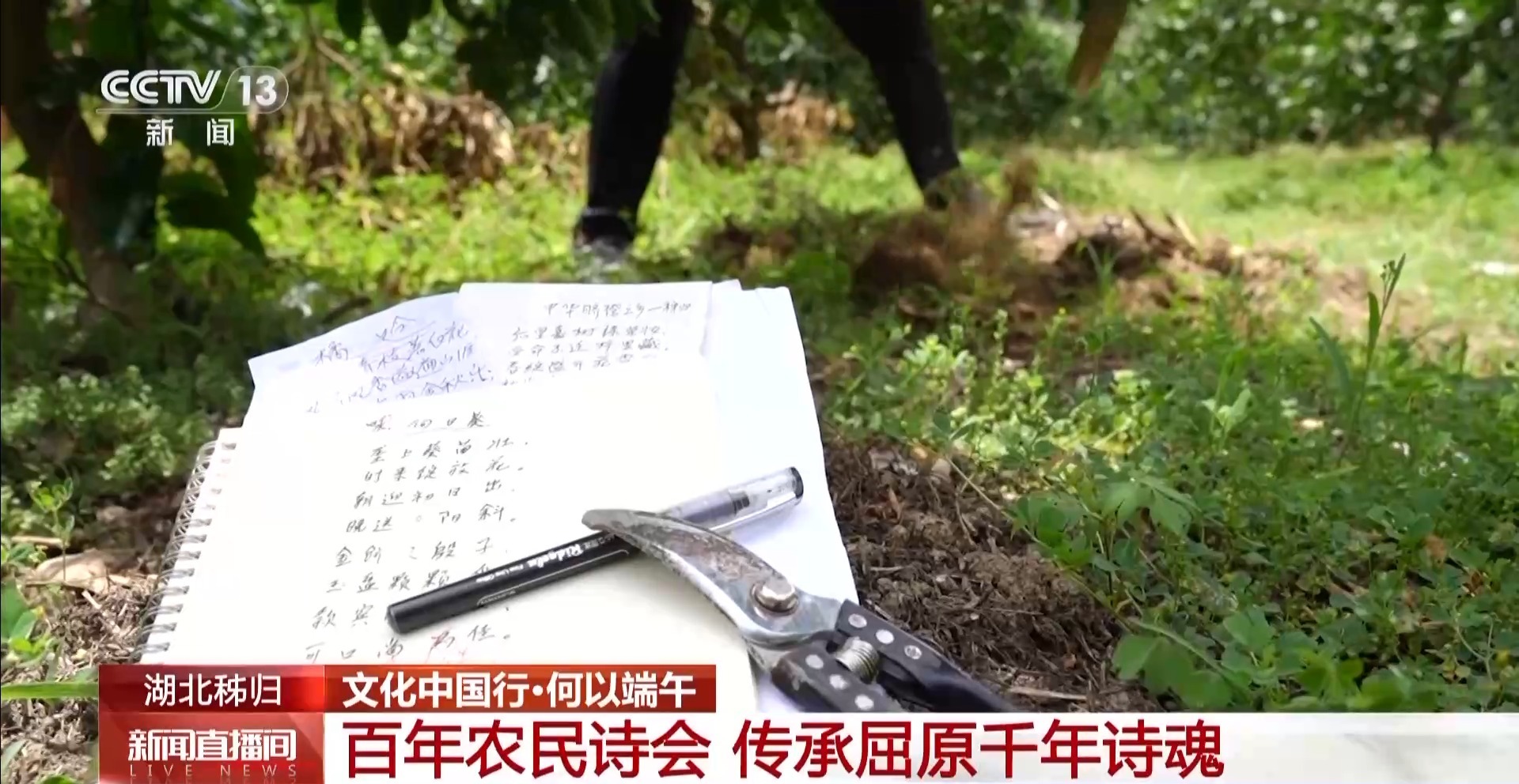 承襲千年詩風,傳承屈原精神,詩社成員不僅吟唱詩歌,還作詩。對于這些農民詩人們來說,每天一手鋤頭、一手詩歌,是大家平日的寫照。今年75歲的黃家兆,60歲時加入詩社,并學習作詩。僅靠著老社員的口授,初中文化的他硬是背下了百余個詩詞格律。有時在田間靈感來了,順手撿來的廢紙都可以成為他寫詩的地方。十幾年來,黃家兆共創(chuàng)作了一百二十多首詩歌。田間的橙子,林中的啄木鳥,四季的勞作,豐收的時刻,一首首詩歌記錄著恬靜的歲月,更記錄著為美好生活的奮斗。