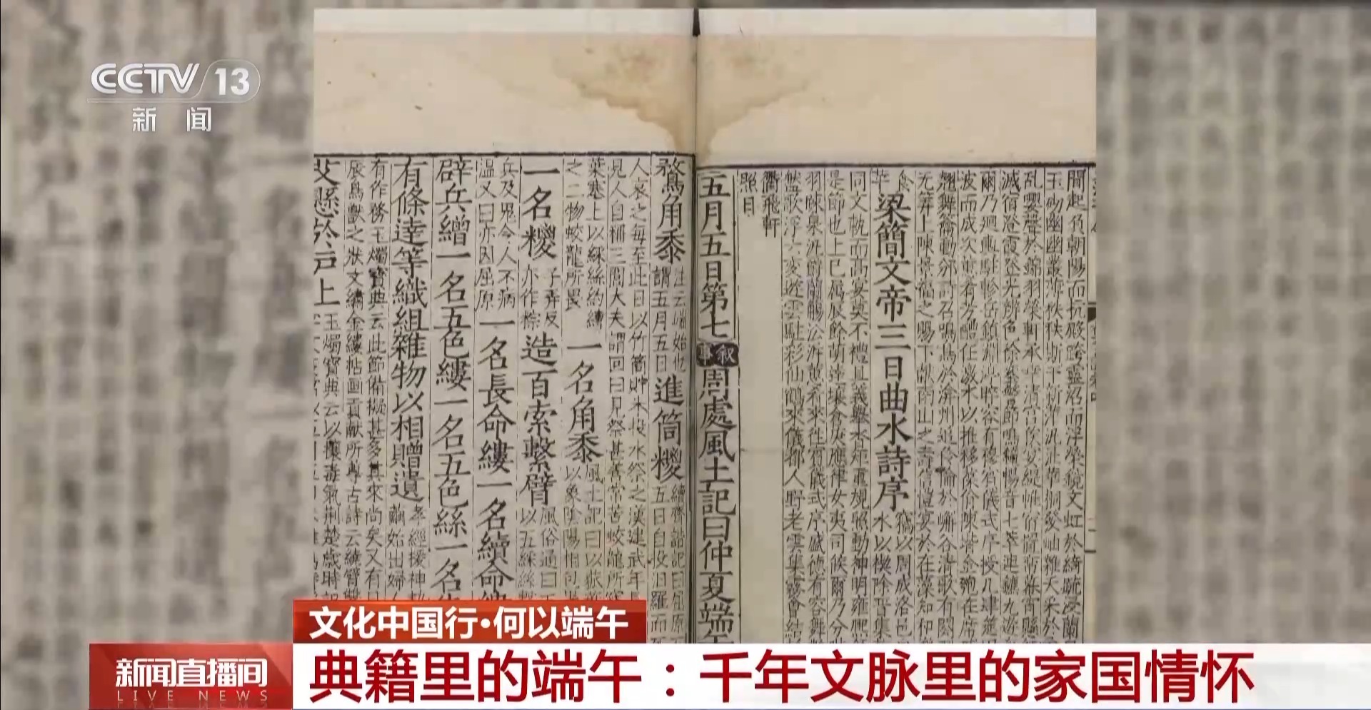端午節(jié)是我國首個入選世界非物質文化遺產的節(jié)日,既有獨特的自然物候特征,又有深厚的民族文化內涵。從典籍里,我們去品讀端午,更能感受這種延續(xù)千年的自然風貌和跨越古今的家國情懷。
