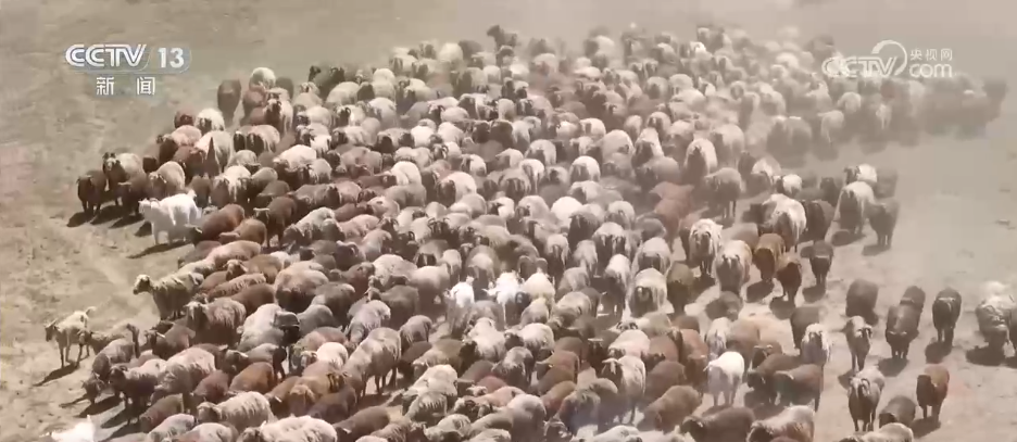 在新疆阿勒泰福??h的沙爾布拉克草原,當(dāng)?shù)啬撩翊┲恋奶厣棧瑤е耶?dāng),趕著牛羊,正在進行轉(zhuǎn)場。今年有45萬頭的牛羊經(jīng)過沙爾布拉克草原千年牧道,轉(zhuǎn)場到水草豐美的夏牧場。