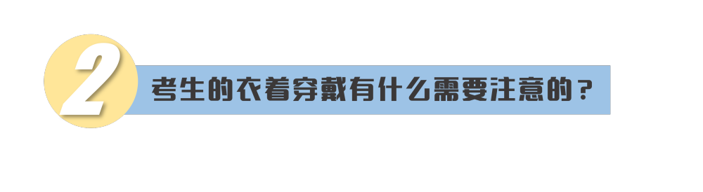 考生的衣著要符合當(dāng)?shù)卣猩荚嚈C(jī)構(gòu)的相關(guān)要求,建議不佩戴含有金屬成分的手鐲、項(xiàng)鏈、發(fā)夾等佩飾物品。同時(shí),應(yīng)根據(jù)當(dāng)?shù)氐奶鞖鉅顩r,注意增減衣物。