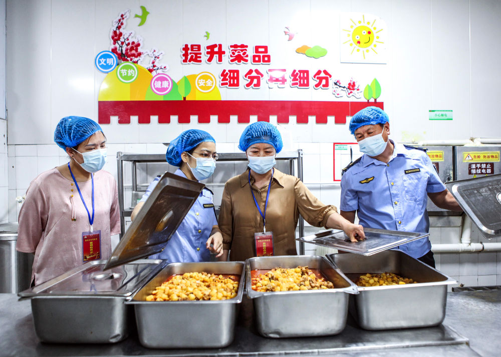6月5日,在河南省焦作市博愛縣第一中學(xué),縣紀委監(jiān)委工作人員聯(lián)合市場監(jiān)管部門對考點食堂開展食品安全專項監(jiān)督檢查。新華社發(fā)(程全 攝)