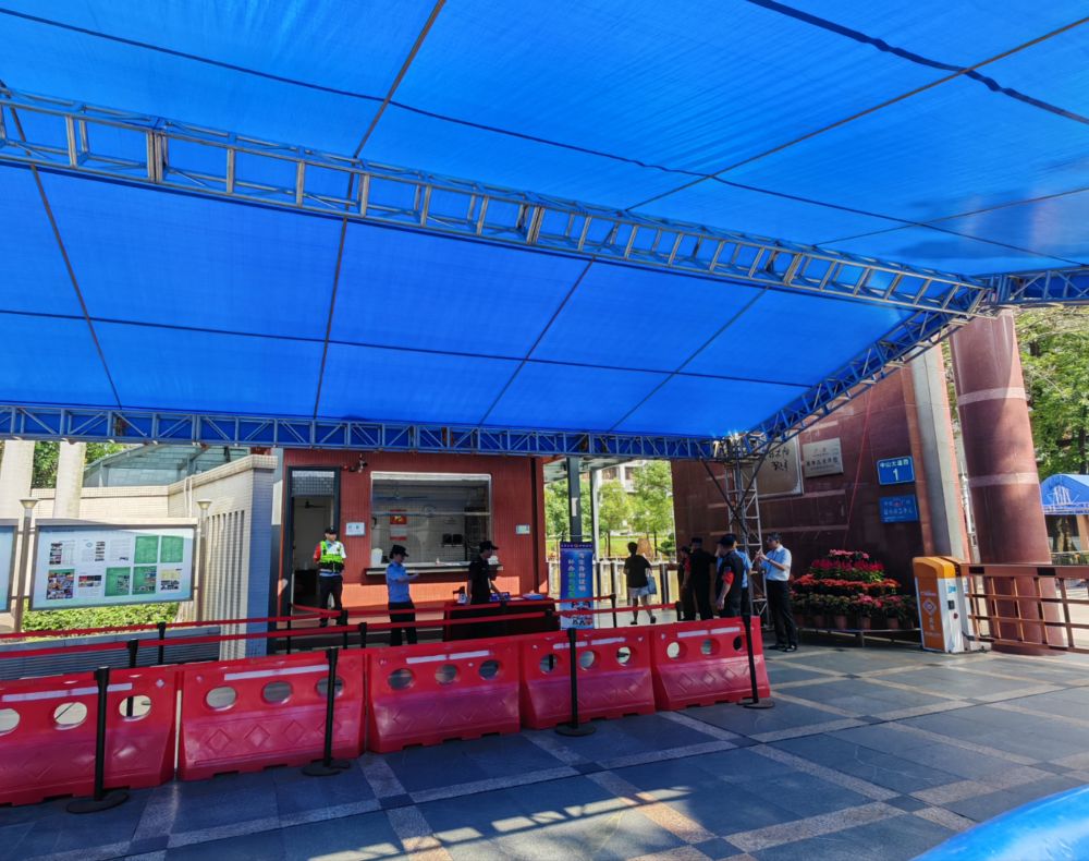北京市氣象臺(tái)預(yù)報(bào)顯示,7日白天晴轉(zhuǎn)多云,最高氣溫32℃。北京一零一中學(xué)提前搭設(shè)紅色晴雨走廊,考生進(jìn)入后可直通候考區(qū)及考場(chǎng)??紙?chǎng)內(nèi)還裝有空調(diào)和靜音排風(fēng)扇,每間教室均有工作人員提前降溫、通風(fēng)、消毒。