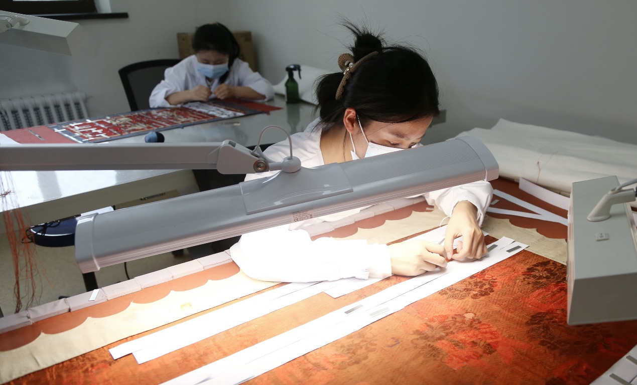 修復(fù)人員正在對紙質(zhì)文物進行修復(fù)