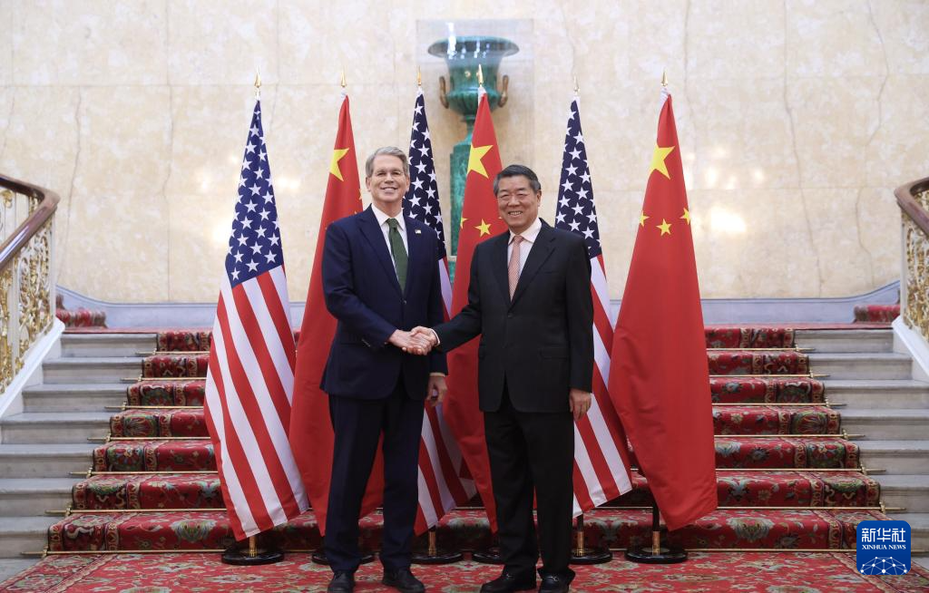 當(dāng)?shù)貢r(shí)間6月9日,中共中央政治局委員、國(guó)務(wù)院副總理何立峰與美方在英國(guó)倫敦開(kāi)始舉行中美經(jīng)貿(mào)磋商機(jī)制首次會(huì)議。這是會(huì)談前,何立峰與美國(guó)財(cái)政部長(zhǎng)貝森特握手。新華社記者 李穎 攝
