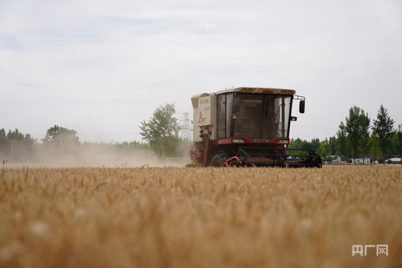 農(nóng)機手在操作收割機收獲小麥(央廣網(wǎng)發(fā) 韓田田 攝)