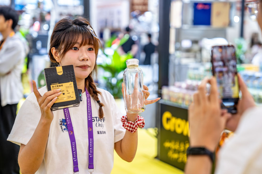 6月19日,一名參展商在第9屆中國(guó)—南亞博覽會(huì)咖啡產(chǎn)業(yè)館直播推介云南小??Х取P氯A社記者胡超 攝