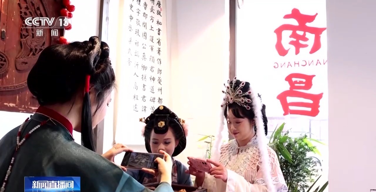 在江西南昌的繩金塔歷史文化街區(qū),身著漢服的年輕人舉著國(guó)風(fēng)包裝的蛋黃麻花拍照打卡,而背后是南昌市具有百年歷史的中華老字號(hào)品牌“品香齋”,傳統(tǒng)與潮流在這一刻交融。