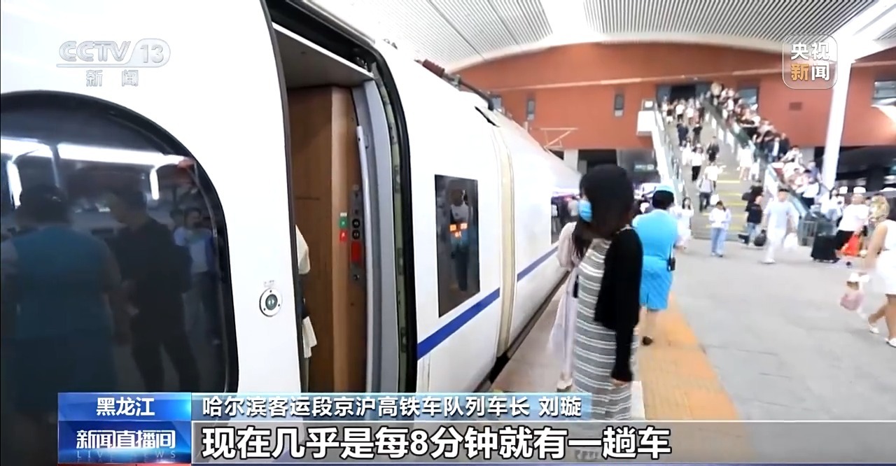 哈爾濱客運段京滬高鐵車隊列車長 劉璇:從最開始每天十幾趟,現(xiàn)在最短間隔8分鐘就有一趟車,哈爾濱客運段為旅客提供更優(yōu)質(zhì)、更好的出行體驗。