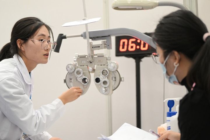 醫(yī)學(xué)生在天津醫(yī)科大學(xué)參加第二屆全國眼視光醫(yī)學(xué)專業(yè)本科生臨床技能大賽。記者 李然 攝