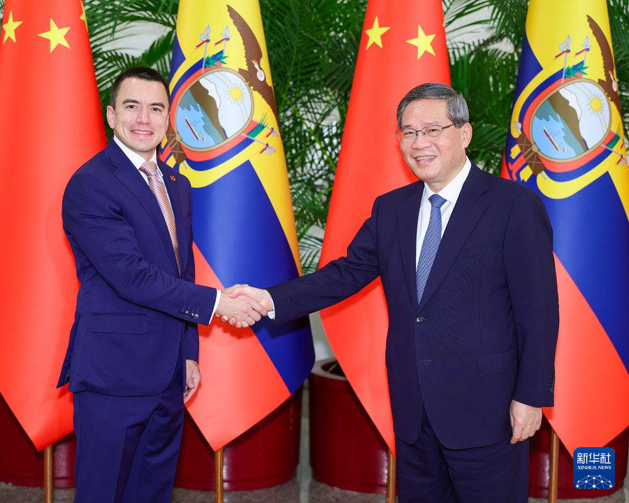 李強指出,中厄同為發(fā)展中國家,都把發(fā)展經濟、改善民生作為重要任務。中方愿同厄方加強發(fā)展戰(zhàn)略對接,密切“一帶一路”合作,擴大雙邊貿易規(guī)模,深化在清潔能源、基礎設施、金融等領域合作。中方樂見更多厄方優(yōu)質產品輸華,歡迎厄方用好進博會等推介平臺。雙方要繼續(xù)加強教育、文化、青年等領域交流合作,便利人員往來,夯實兩國關系的民意基礎。中方愿同厄瓜多爾等拉美和加勒比國家一道,以共建中拉命運共同體“五大工程”為契機,在實現(xiàn)現(xiàn)代化的道路上攜手前行。中方也愿同厄方加強在聯(lián)合國等多邊機制的溝通協(xié)調,踐行真正的多邊主義,為維護世界和平和發(fā)展、推動構建人類命運共同體作出積極貢獻。