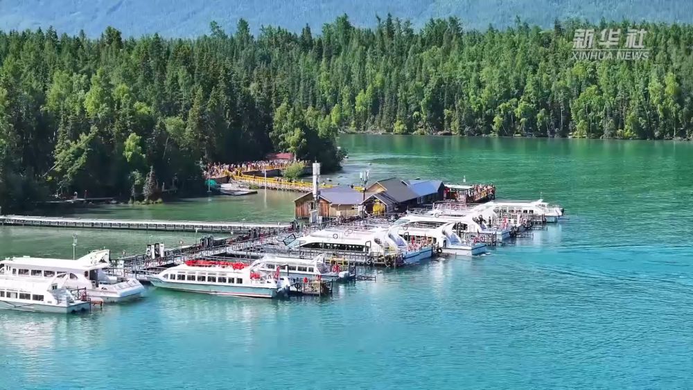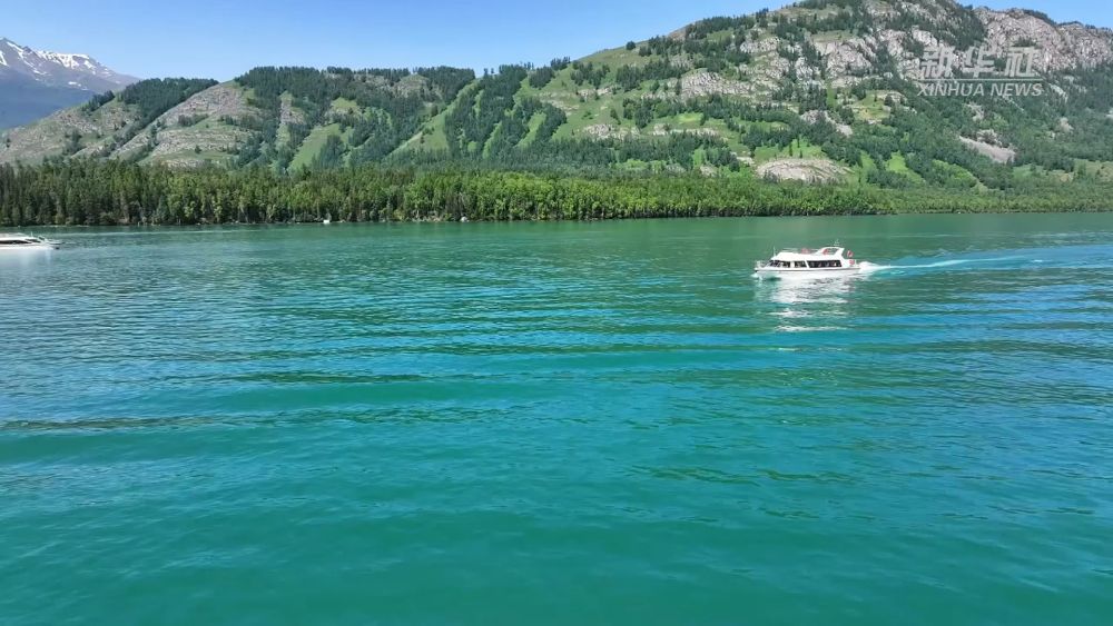 在碧波蕩漾的新疆喀納斯湖里,一艘艘全電觀光游船正載著游客欣賞著這里獨(dú)特的湖光山色。