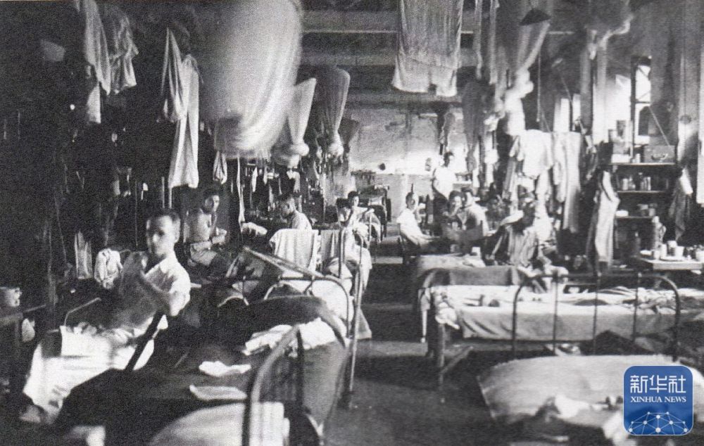 上海龍華集中營里,人們在排隊取水(資料照片)。新華社發(fā)(上海中學供圖)