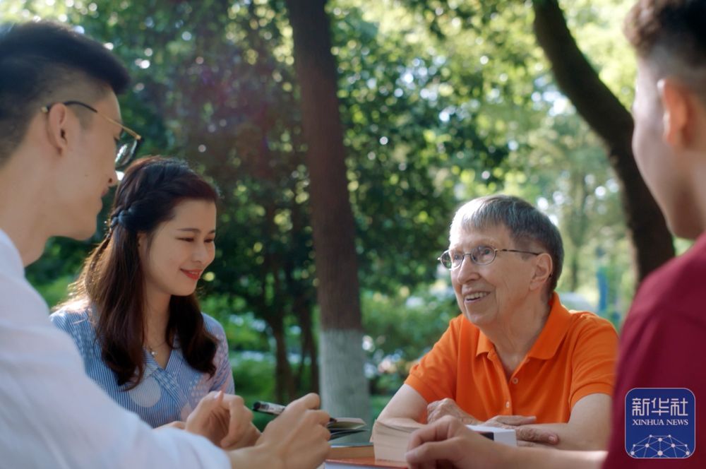 2019年,白麗詩與上海外國語大學的學生在一起。新華社發(fā)(上海外國語大學供圖)