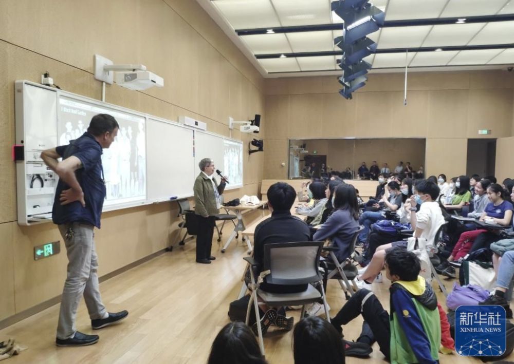 2021年4月28日,白麗詩在上海中學與學生交流。新華社發(fā)(上海中學供圖)