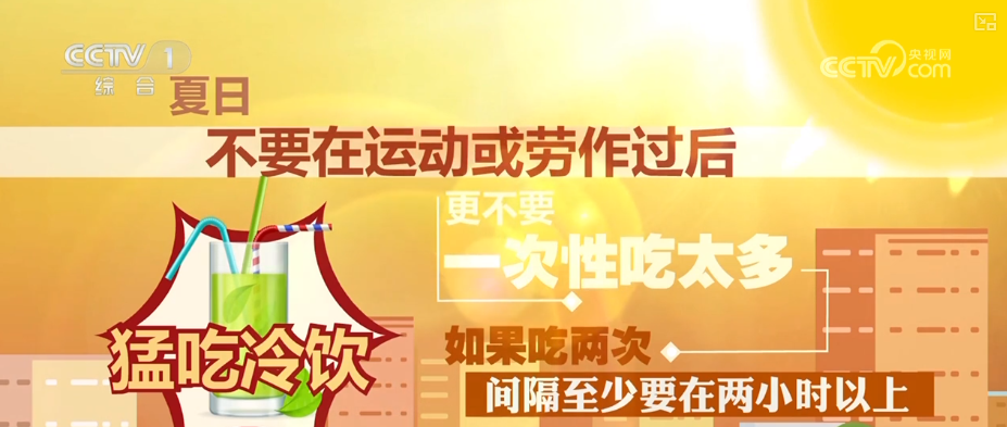 醫(yī)生建議,夏日不要在運(yùn)動(dòng)或勞作過(guò)后猛吃冷飲,更不要一次性吃太多,如果吃?xún)纱?,間隔至少要在兩小時(shí)以上。有偏頭痛等頭痛史的人或體溫調(diào)節(jié)中樞尚未發(fā)育完全的兒童慎食冷飲。