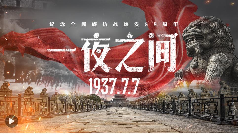 為紀(jì)念全民族抗戰(zhàn)爆發(fā)88周年,人民日?qǐng)?bào)新媒體推出重磅紀(jì)錄片《一夜之間》,講述親歷者所經(jīng)歷的“七七事變”。