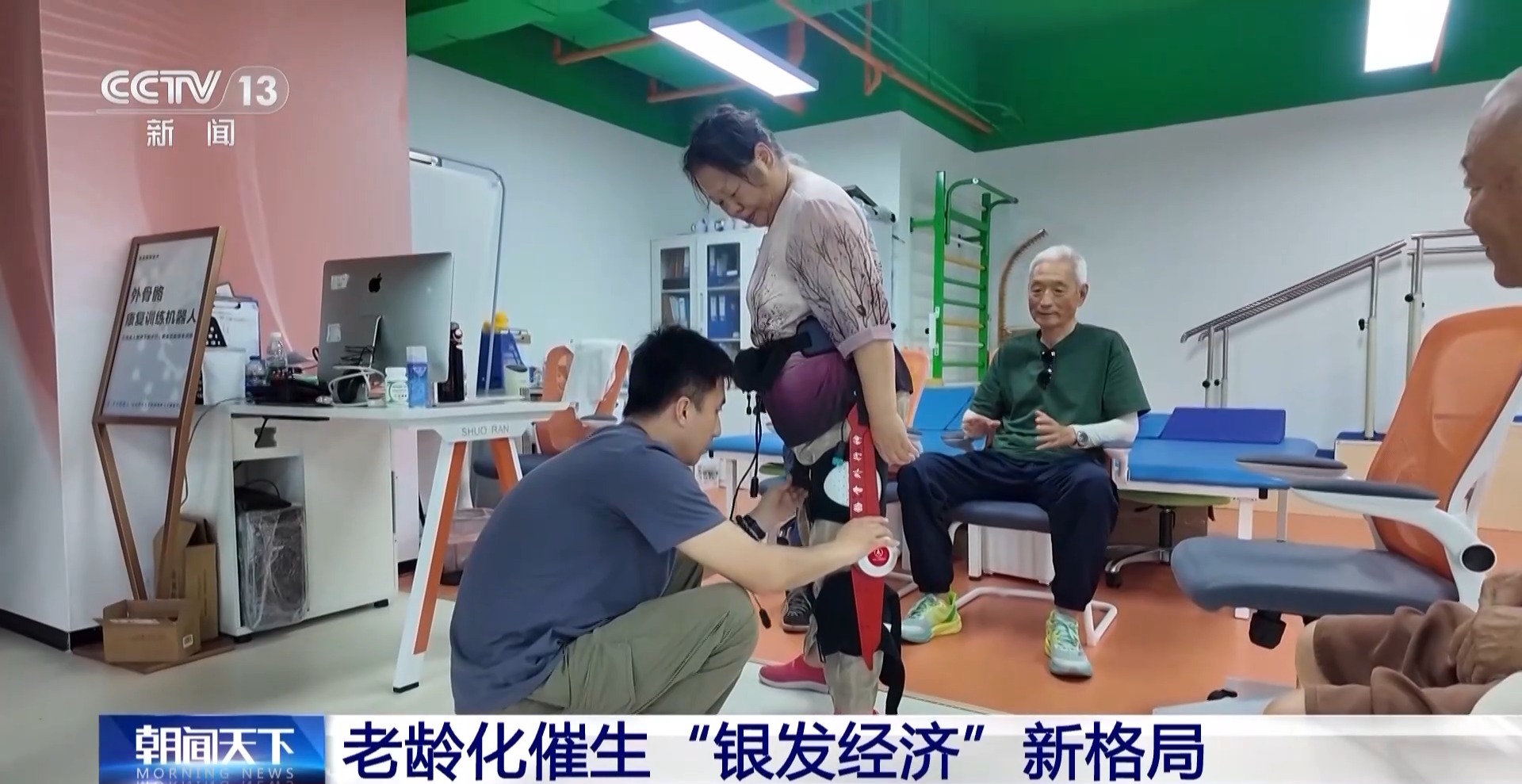 在這個外骨骼機(jī)器人康復(fù)訓(xùn)練中心,記者看到幾位老年志愿者正在測試一款助力行走的外骨骼機(jī)器人。