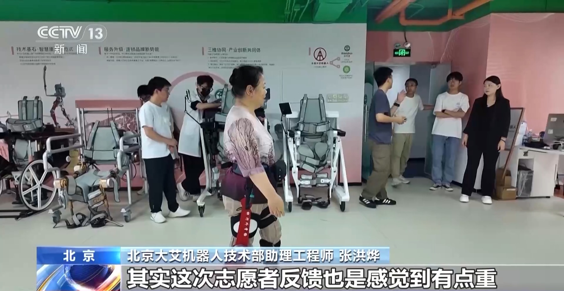 北京大艾機(jī)器人技術(shù)部助理工程師 張洪燁:在穿戴方面,老人其實更希望是讓它更簡單、更易上手,能自己獨立完成穿戴。在配重方面,其實這次志愿者反饋也是感覺到有點重,我們后續(xù)應(yīng)該是再減重。