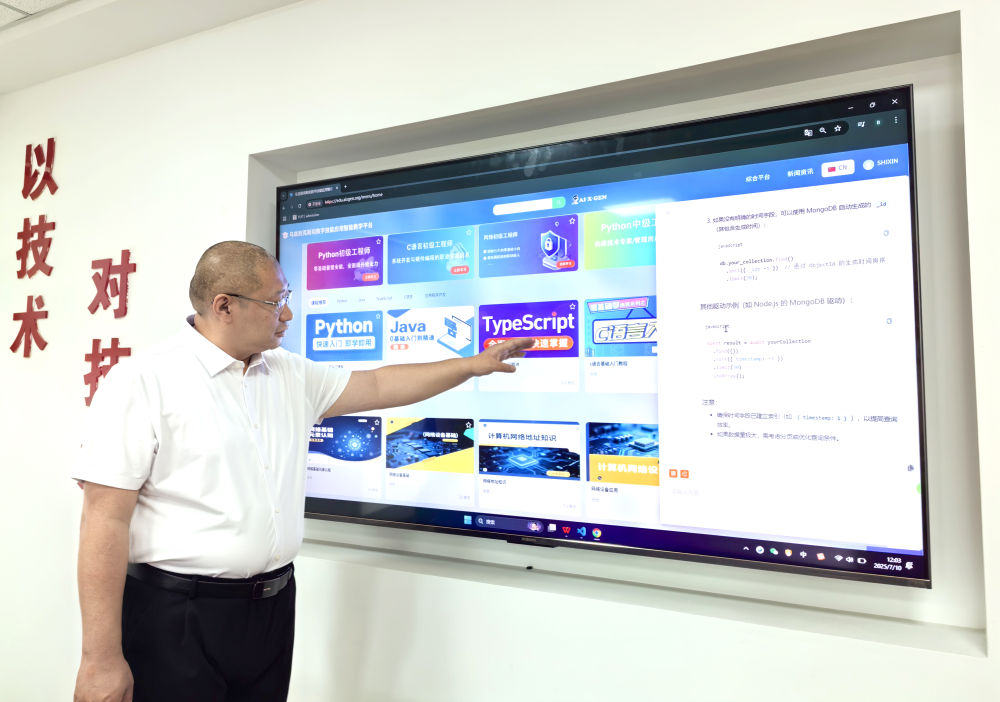 “我們?yōu)闉跗潉e克斯坦學(xué)員量身打造了數(shù)字技能應(yīng)用的‘虛擬課堂’,在這個(gè)智能教學(xué)平臺(tái)界面上輸入問題,人工智能會(huì)隨即回應(yīng)?!壁w洪宇展示著他們的產(chǎn)品。