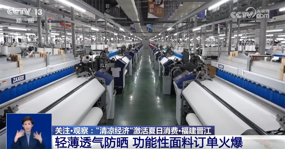 除了旅游消費(fèi),盛夏時(shí)節(jié),防曬產(chǎn)品也迎來銷售旺季。在福建晉江,這里的多家服裝生產(chǎn)或紡織面料企業(yè)生產(chǎn)的涼感、速干、驅(qū)蚊、防曬等功能性面料訂單火爆,備受市場(chǎng)青睞。