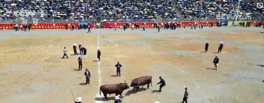 在位于四川涼山的普格縣,傳統(tǒng)點(diǎn)火儀式拉開了當(dāng)?shù)叵盗谢顒拥男蚰?,傳統(tǒng)歌舞千人朵洛荷驚艷四方。身著五彩彝繡盛裝的姑娘們手持黃傘,隨悠揚(yáng)旋律翩躚起舞。斗牛比賽在普格縣火把廣場上演巔峰對決,強(qiáng)壯的公牛的每一次抵角、閃躲都引得現(xiàn)場一片歡呼。