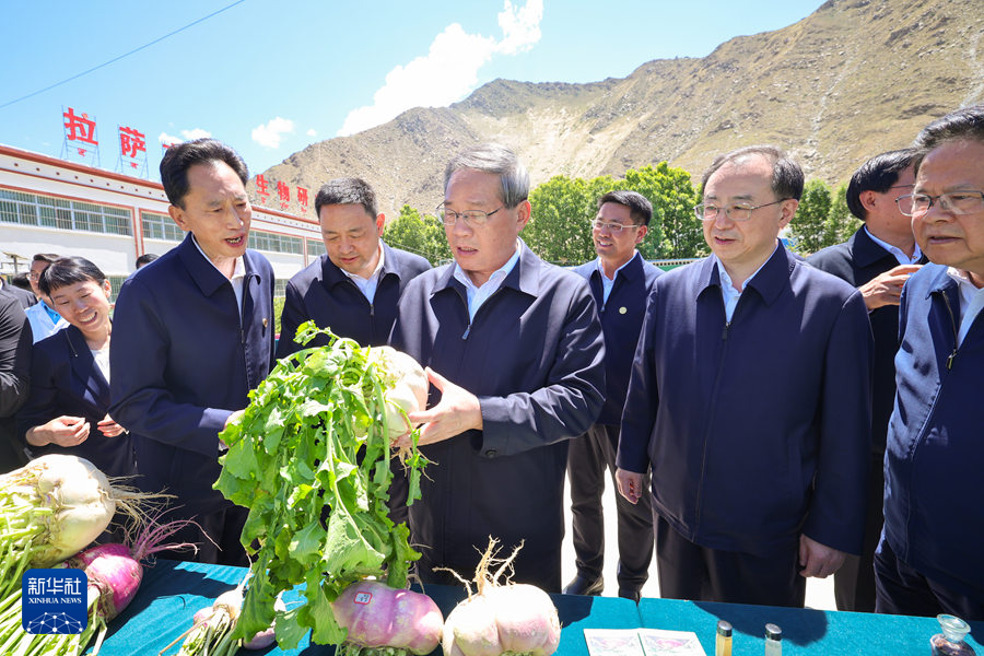 在拉薩,李強(qiáng)來(lái)到曲水才納國(guó)家現(xiàn)代農(nóng)業(yè)示范區(qū),聽(tīng)取自治區(qū)農(nóng)牧業(yè)產(chǎn)業(yè)發(fā)展、高原生物研究所建設(shè)等介紹,觀看示范區(qū)自產(chǎn)果蔬、高原特色食飲品、民族手工藝品等展示。他說(shuō),利用特色優(yōu)勢(shì)資源發(fā)展高原農(nóng)牧業(yè),是富民興藏的重要抓手。要加強(qiáng)農(nóng)牧業(yè)新技術(shù)示范推廣,努力在高原育種等方面取得新突破,依托現(xiàn)代農(nóng)業(yè)產(chǎn)業(yè)園、特色產(chǎn)業(yè)集群等推動(dòng)農(nóng)牧業(yè)規(guī)?;?、品牌化發(fā)展。要培養(yǎng)更多懂科技、會(huì)管理的新型職業(yè)農(nóng)牧民,創(chuàng)新聯(lián)農(nóng)帶農(nóng)機(jī)制,更好帶動(dòng)群眾致富。調(diào)研中,李強(qiáng)沿途察看南北山綠化工程,勉勵(lì)當(dāng)?shù)馗刹砍浞终{(diào)動(dòng)各方面力量廣泛參與造林綠化,以良好生態(tài)環(huán)境惠及民生。