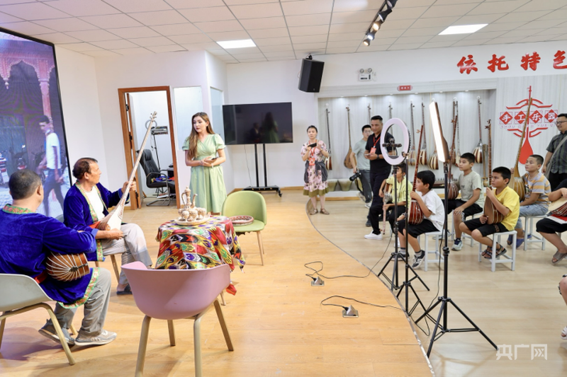 7月27日,記者跟隨“石榴花開 籽籽同心鑄牢中華民族共同體意識”網(wǎng)絡(luò)主題活動,走進新疆阿克蘇地區(qū)新和縣加依村。在自治區(qū)級樂器傳承人努爾東·司馬義的院落里,都塔爾琴弦調(diào)音聲交織成曲,身著民族服裝的當?shù)厮嚾苏S著琴弦躍動,與游客即興共舞。