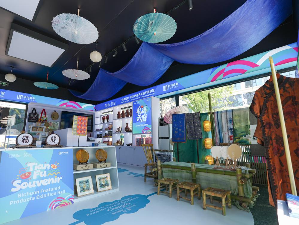 8月3日,在成都世運(yùn)會運(yùn)動員村A區(qū)拍攝的四川特色產(chǎn)品展示展銷館。新華社記者 王曦 攝