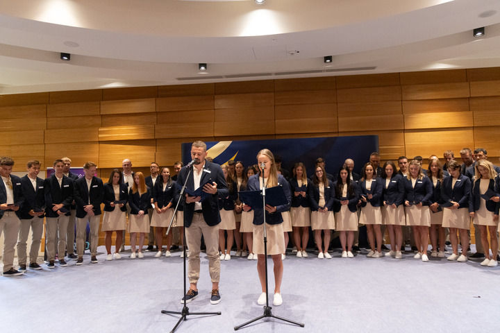 2025年7月17日,運動員在匈牙利代表團誓師大會上宣誓。