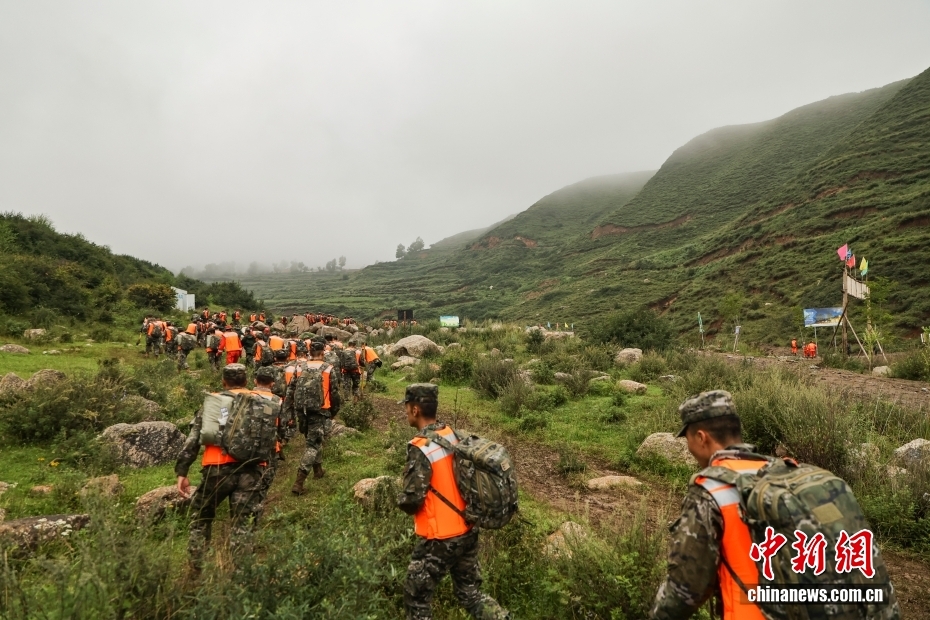 8月8日,武警甘肅總隊機動支隊官兵在甘肅省蘭州市榆中縣興隆山村轉(zhuǎn)移被困群眾。劉昆 攝