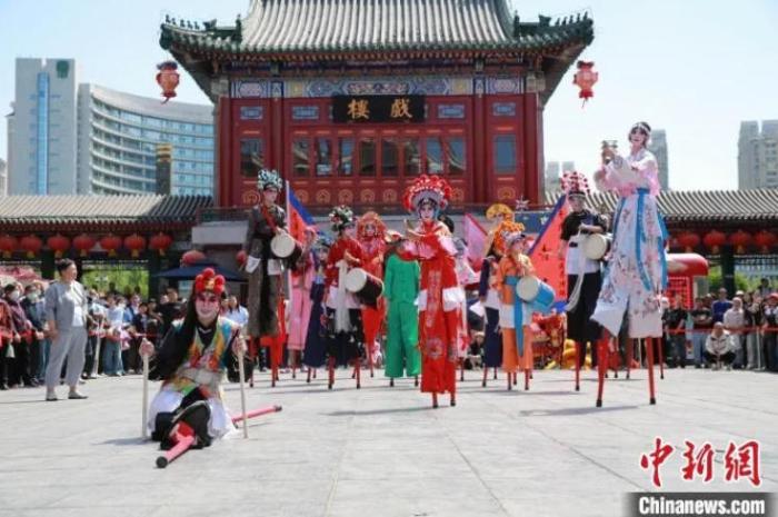 圖為“五一”假期首日,民眾在天津古文化街宮前廣場(chǎng)觀看民俗花會(huì)表演。魏進(jìn) 攝