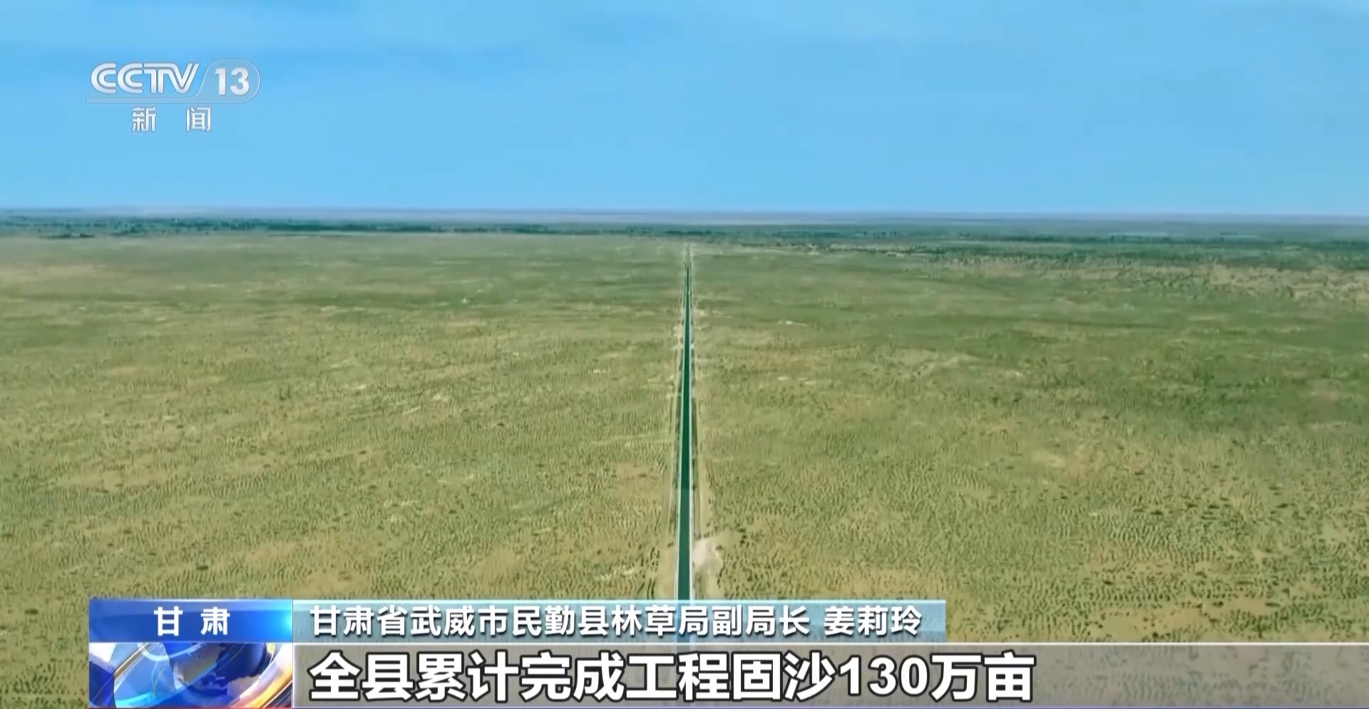 甘肅省武威市民勤縣林草局副局長 姜莉玲:截至目前,全縣累計(jì)完成工程固沙130萬畝,封沙育林草325萬畝,人工造林保存面積261萬畝。