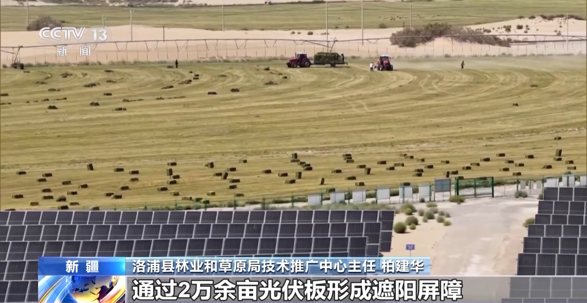 洛浦縣林業(yè)和草原局技術(shù)推廣中心主任 柏建華:光伏板不僅能發(fā)電,還改變了沙漠生態(tài)。通過2萬余畝光伏板形成遮陽屏障,使地表溫度下降3~5℃,降低了沙漠水汽蒸發(fā),土壤含水率提升20%左右,作物存活率顯著提高。