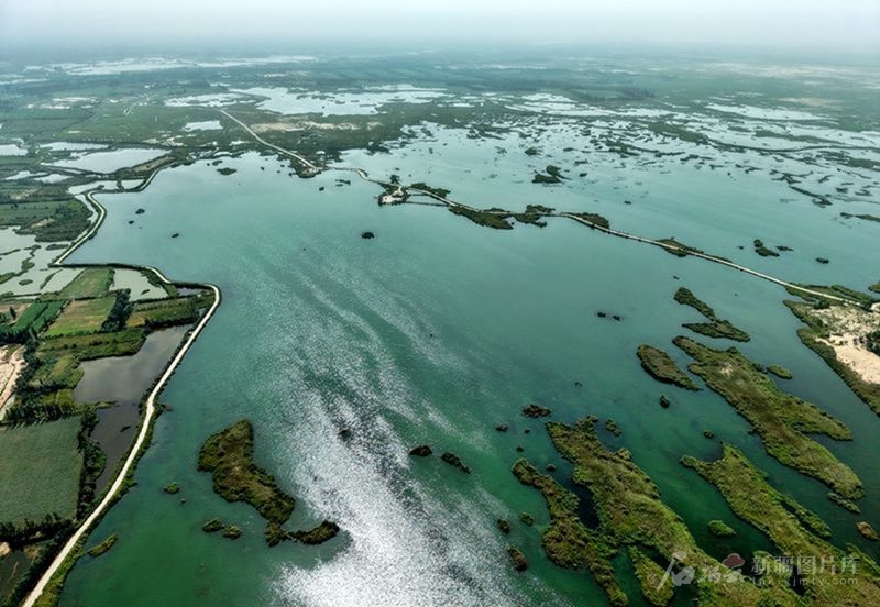 俯瞰塔克拉瑪干沙漠邊緣的拉里昆國家濕地公園(8月6日無人機(jī)攝)。天山網(wǎng)-新疆日?qǐng)?bào)記者 鄒懿 攝