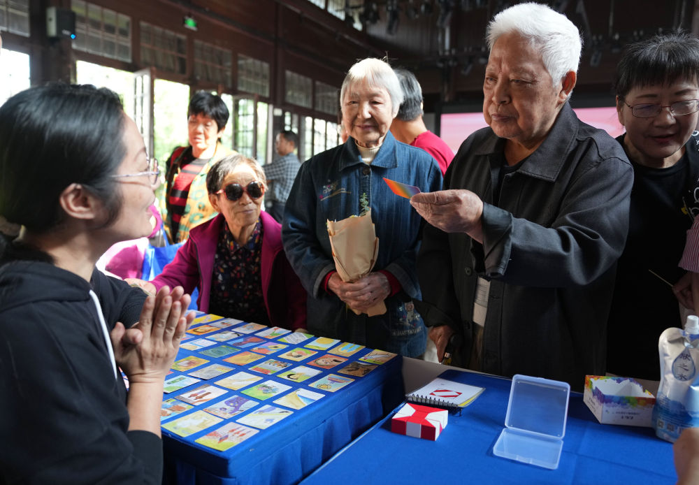 2024年10月11日,在杭州市西湖區(qū)北山街道舉行的情暖桑榆——孝親敬老服務(wù)進(jìn)社區(qū)活動(dòng)中,志愿者面向社區(qū)居民開(kāi)展心理健康服務(wù)。新華社記者 韓傳號(hào) 攝